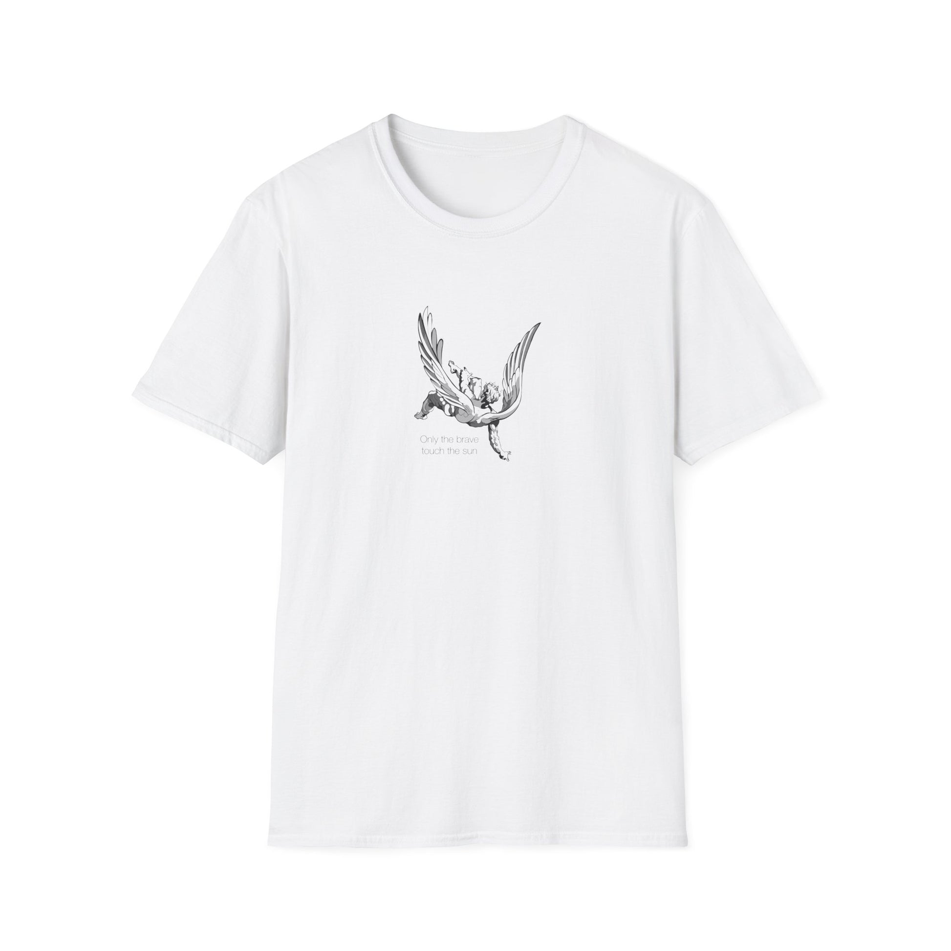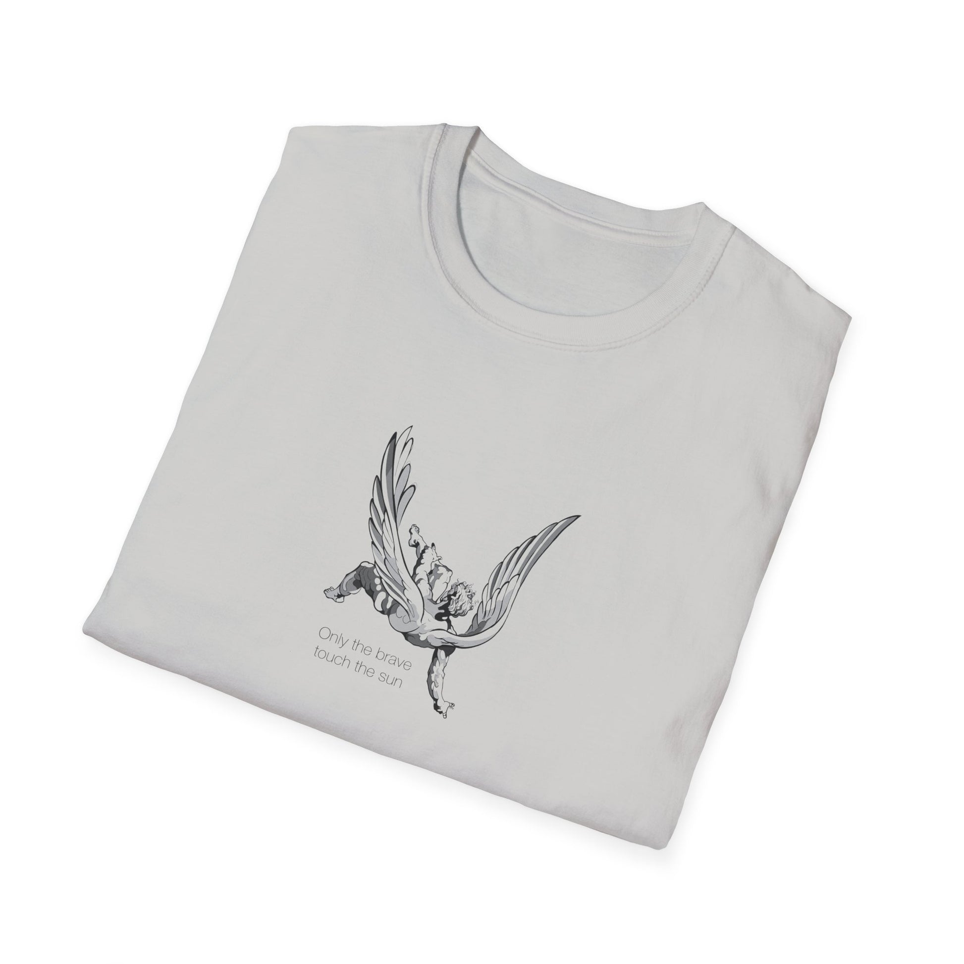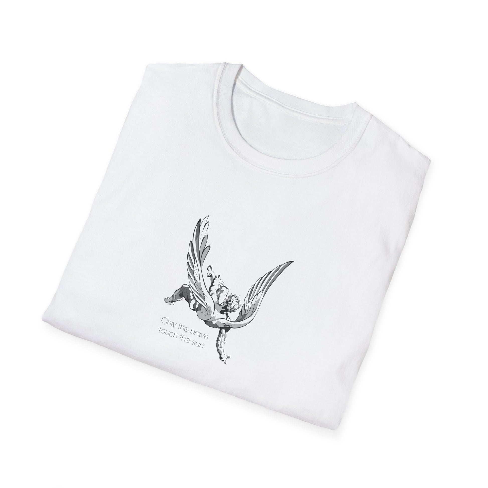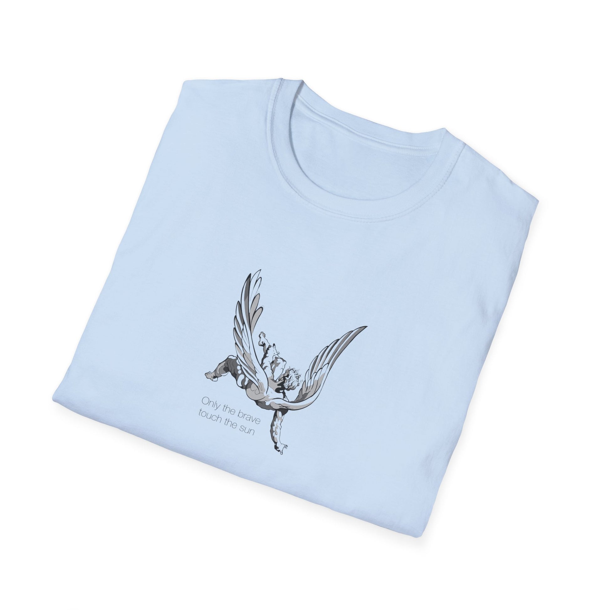 A bold and empowering unisex T-shirt with the inspiring quote 'Only the brave touch the sun'. This T-shirt exudes confidence and courage, making it perfect for those who want to make a statement with their fashion choices. It is suitable for adults and can be worn on various occasions to showcase bravery and strength. Ideal for everyday wear, as well as special events and gatherings.